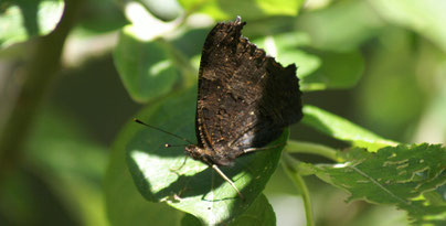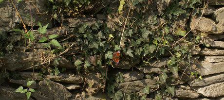 Ci-dessus, à gauche, le paon de jour prend facilement le soleil sur son territoire; à droite, le dessous foncé des ailes.