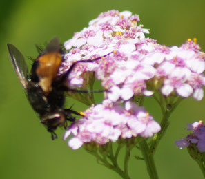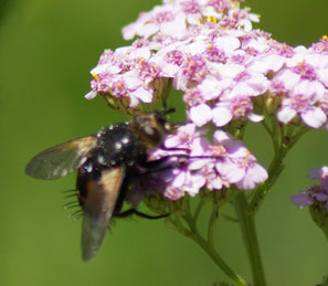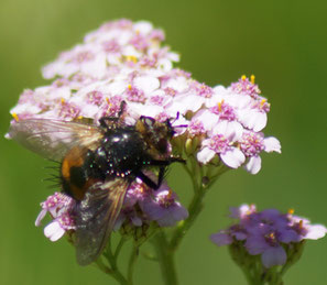 Une mouche Tachinaire (Diptère - Tachinidés) vient explorer une achillée millefeuille...